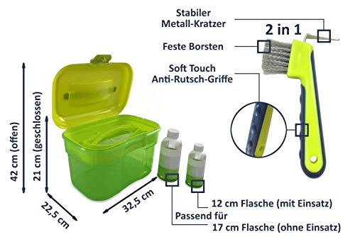 Adozen Pferde-Putzbox mit Inhalt für Kinder und Erwachsene | 9-Teilig befüllt | Soft Touch Antirutschgriffe | Limette-Grün-Gelb
